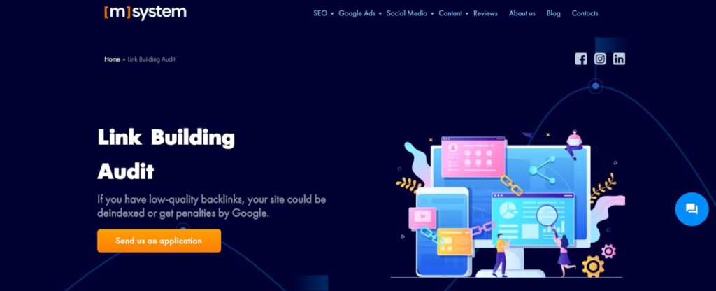 M. System offers comprehensive backlink auditing services designed to evaluate and optimize link profiles for improved search performance.